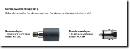 Einfache Handhabung, selbst beim handgeführten Trockenbohren bleibt selbstverständlich alles staubfrei. Die kurze und kompakte Bauform, Sicherheit durch DUSS-Sicherheit-Rollenkupplung mit Anti-Blockier-System, ofenbaugerechte Durch- messer von 82 bis 250 bzw. 127 bis 300 mm, runden diese hochwertigen Maschinen ab.