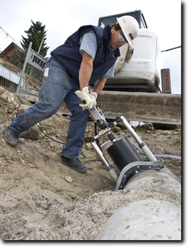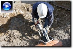 Bisher kannte man zum Anbohren von Abfluß-Kanälen nur relativ große Bohrgeräte, die auf Bohrständern montiert sind und viel Platz brauchen. Dies bedeutet beim Anbohren seitwärts, dass der Kanal frei gelegt werden muss, um einen Befestigungsgurt für das Bohrgerät um das Rohr spannen zu können. Die Auskofferung für Hausanschlüsse muss also unter Umständen sogar unnötig breiter sein.